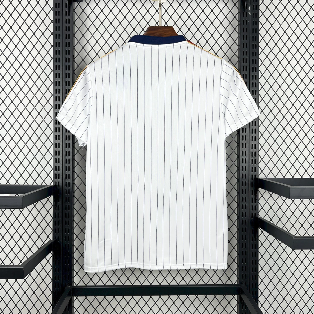 Com uma base branca clássica, a camisa traz listras finas marinho, criando um visual clean e elegante, perfeito para quem busca um look casual e sofisticado, mas com um toque de identidade esportiva. A gola marinho e as listras vermelhas e amarelas nos ombros trazem o design icônico que evoca a energia vibrante e a herança da Roma. O detalhe do distintivo Lupetto no peito reforça a conexão com o clube, trazendo a símbolo da história viva da Roma diretamente para o seu guarda-roupa. 🦁💛