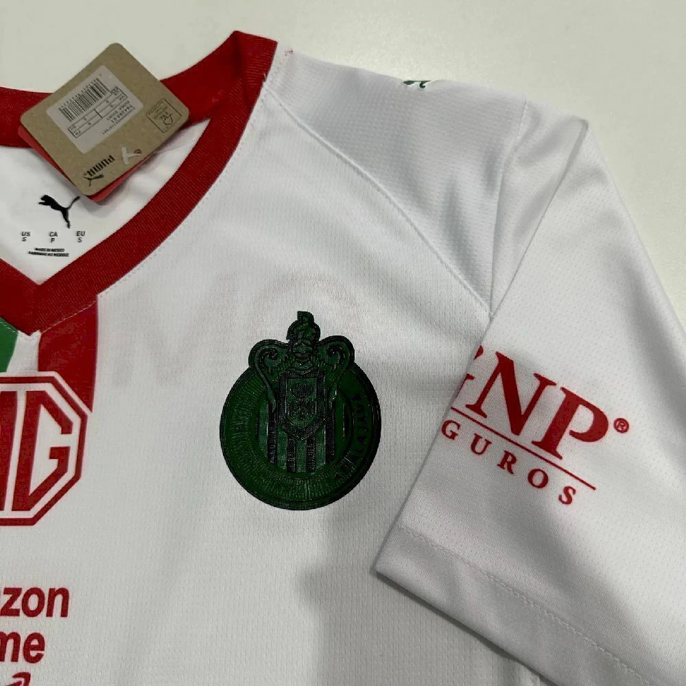 Escudo do Chivas bordado no peito, sinal de autenticidade e tradição