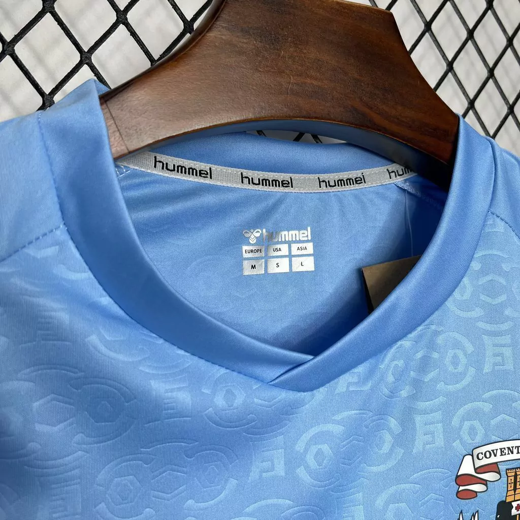 A nova camisa titular do Coventry City é predominantemente azul celeste e traz como principal destaque, grafismos sequenciados em embossing, representando a “Coffa’s Tree”, árvore que deu origem à cidade “Coventry”.