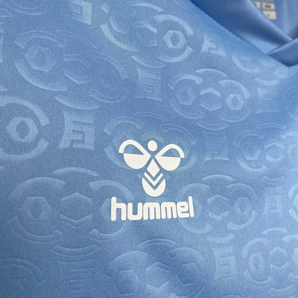 O escudo do clube está no lado esquerdo do peito, enquanto o logo da Hummel e os chevrons que percorrem os ombros, aparecem em branco, assim como o patrocinador master.