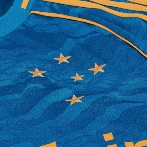 Baseada no moderno template Tiro25 da adidas, a camisa apresenta tons de azul em degradê, com grafismos que simbolizam o movimento fluvial do “Velho Chico”. O arco dourado na parte frontal representa o brilho do pôr do sol mineiro refletido sobre o rio, trazendo um toque de elegância e emoção única.