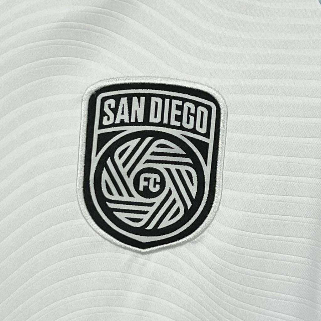 A primeira camisa reserva do San Diego FC é inspirada no mantra do clube “Woven Into One”, e segundo o mesmom oferece uma tela em branco para o povo de San Diego se unir e imaginar o futuro do clube.