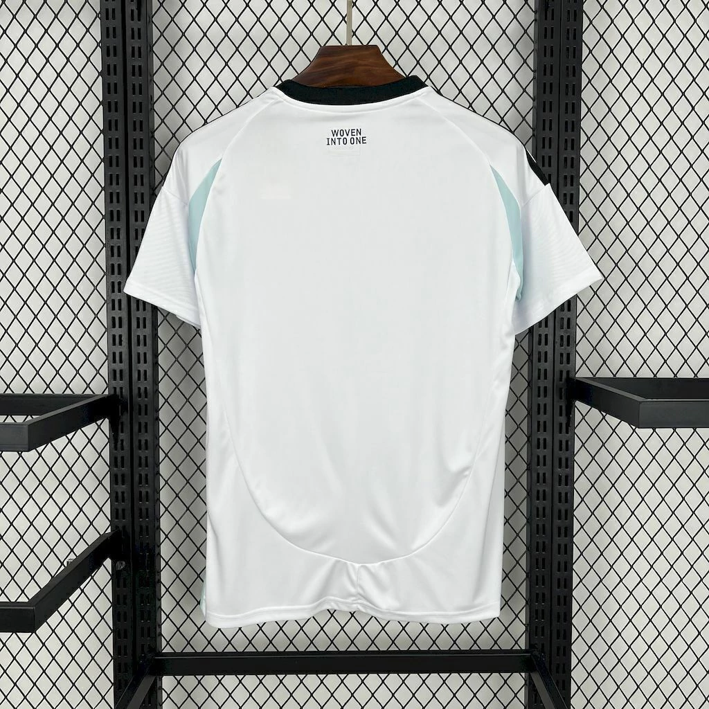 Com o template Tiro24 como base, a camisa é branca e traze os detalhes padrão, como as axilas, dorsais e os arcos laterais em azul celeste bem claro. As três listras nas mangas e a gola são azul marinho, sendo que no interior da última vai uma faixa celeste. Na nuca, é escrito o mantra e nome da camisa, enquanto que na barra.