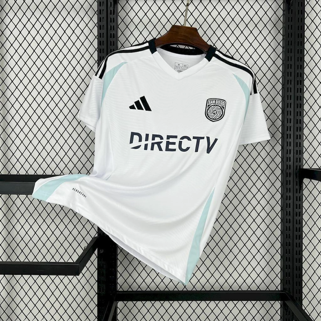 A Adidas estampa seu logo em azul marinho, no lado direito do peito, enquanto o escudo do San Diego vai no lado esquerdo, em uma versão azul marinho.