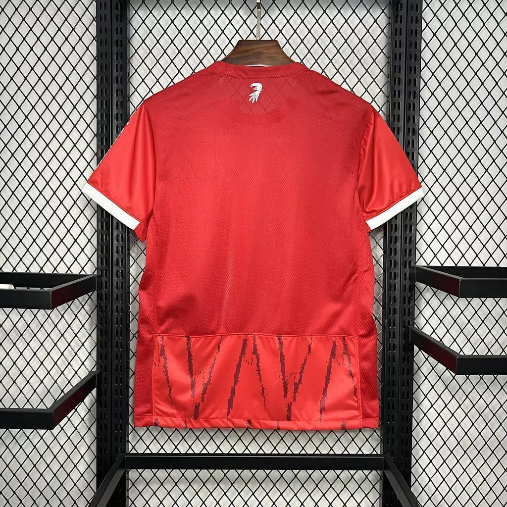 A nova camisa titular é vermelha e traz como destaque um padrão em zigue-zague em efeito glitch em tom sobre tom.