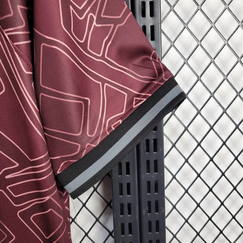 O manto especial da seleção traz o vinho como cor predominante, com uma serie de detalhes. A começa, por todo o manto é colocado um grafismo inspirado no paraquedismo e remonta ao fundador da Halo, Helge Petersen, que concebeu a ideia para a marca durante um salto de paraquedas em 1981. Por cima, ainda vão três listras verticais nas regiões frontal e das costas, além de faixas laterais, num tom mais escuro da cor predominante, mas transparente. A gola V com sobreposição é preta e cinza, mesmo padrão dos punhos. No interior da gola, é escrita a frase “parte de algo maior”.