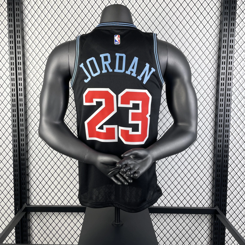 O símbolo da NBA é feito em silk, um pouco diferente do tipo utilizado nos demais detalhes da camisa;