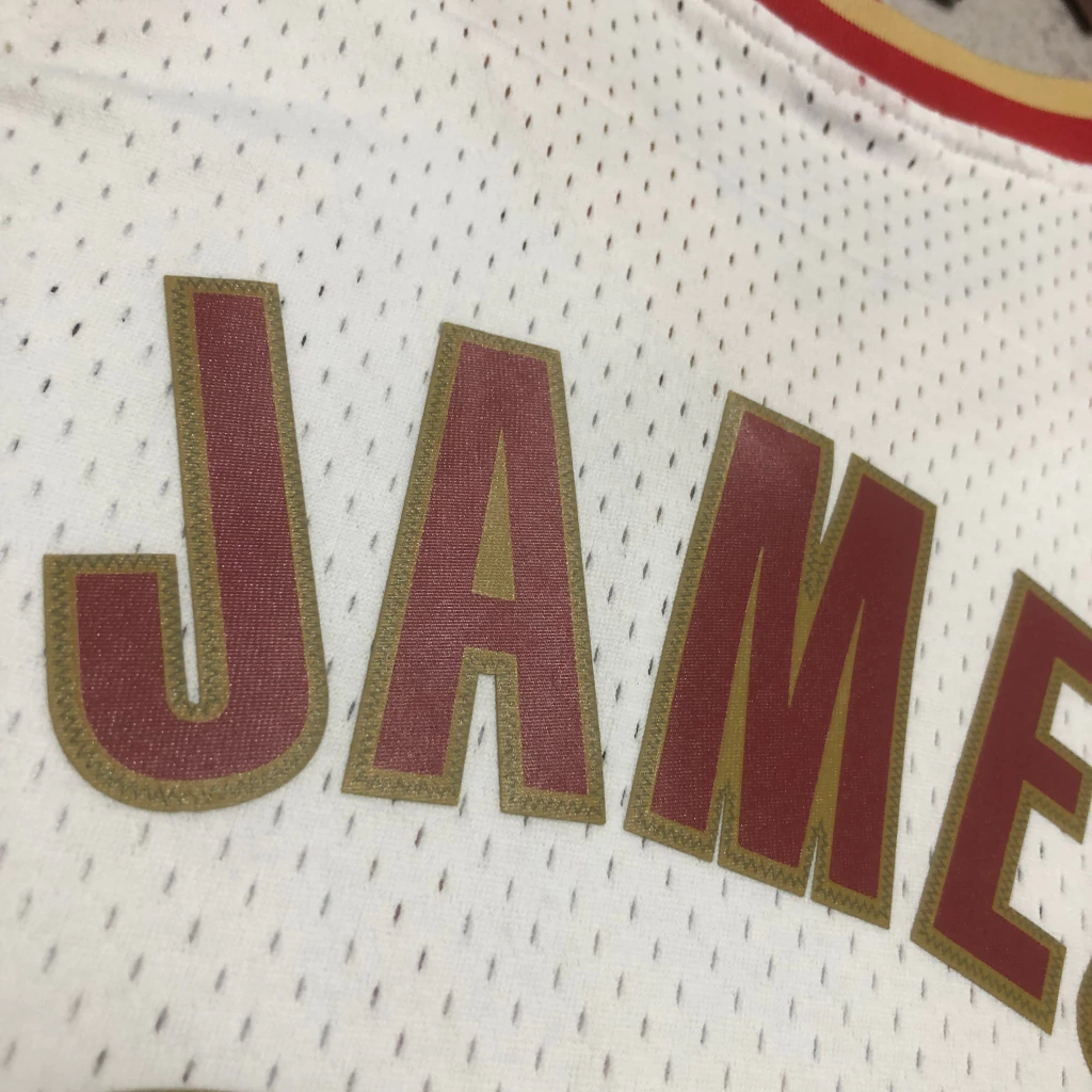 O símbolo da NBA é feito em silk, um pouco diferente do tipo utilizado nos demais detalhes da camisa;