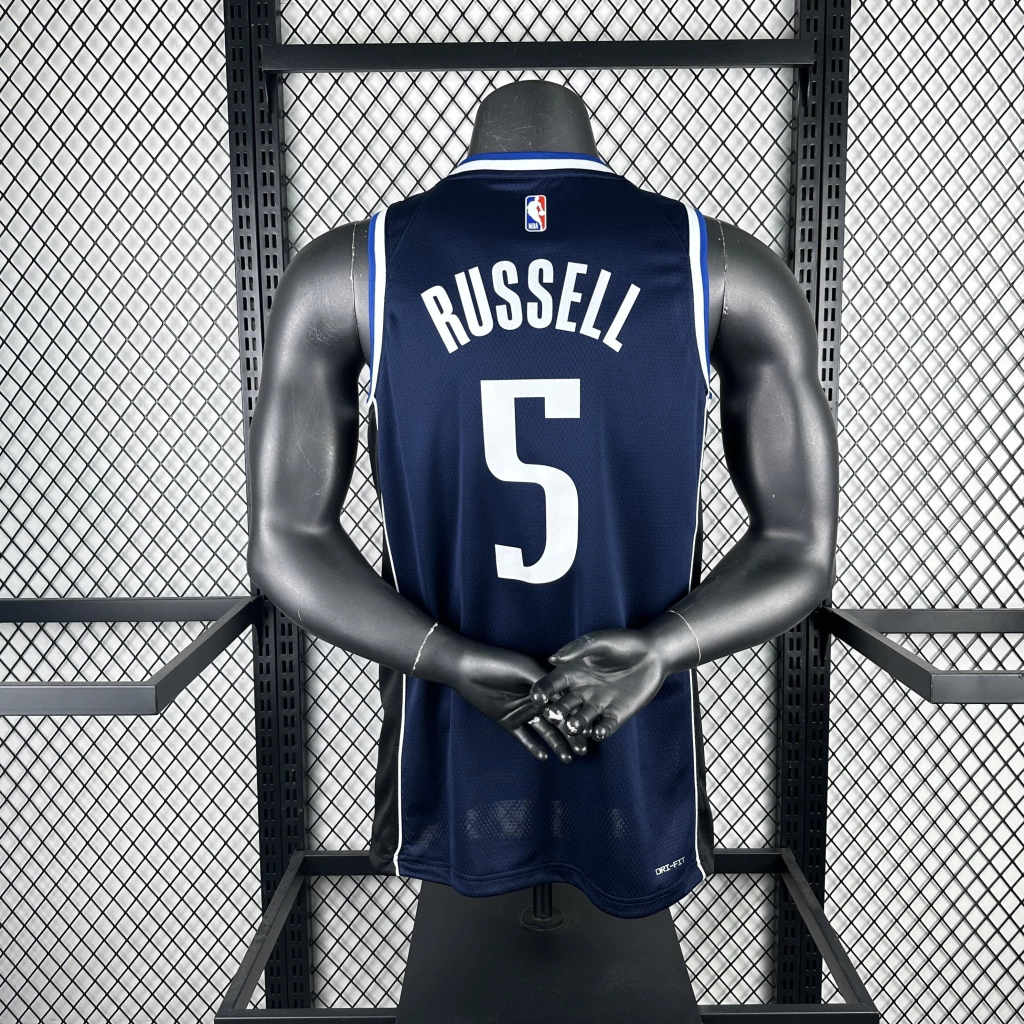 Nome e número de D’Angelo Russell – destaque do elenco 2025/26, símbolo de habilidade e liderança.