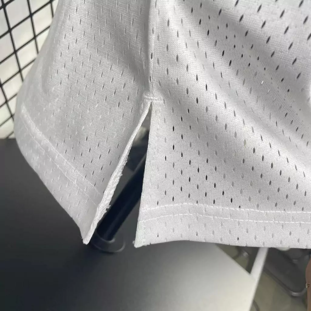 O símbolo da NBA é feito em silk, um pouco diferente do tipo utilizado nos demais detalhes da camisa;