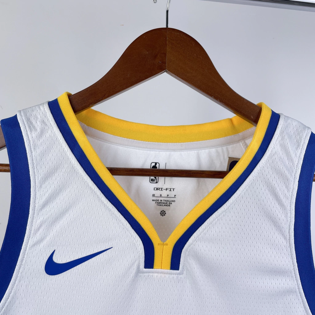 O símbolo da NBA é feito em silk, um pouco diferente do tipo utilizado nos demais detalhes da camisa;
