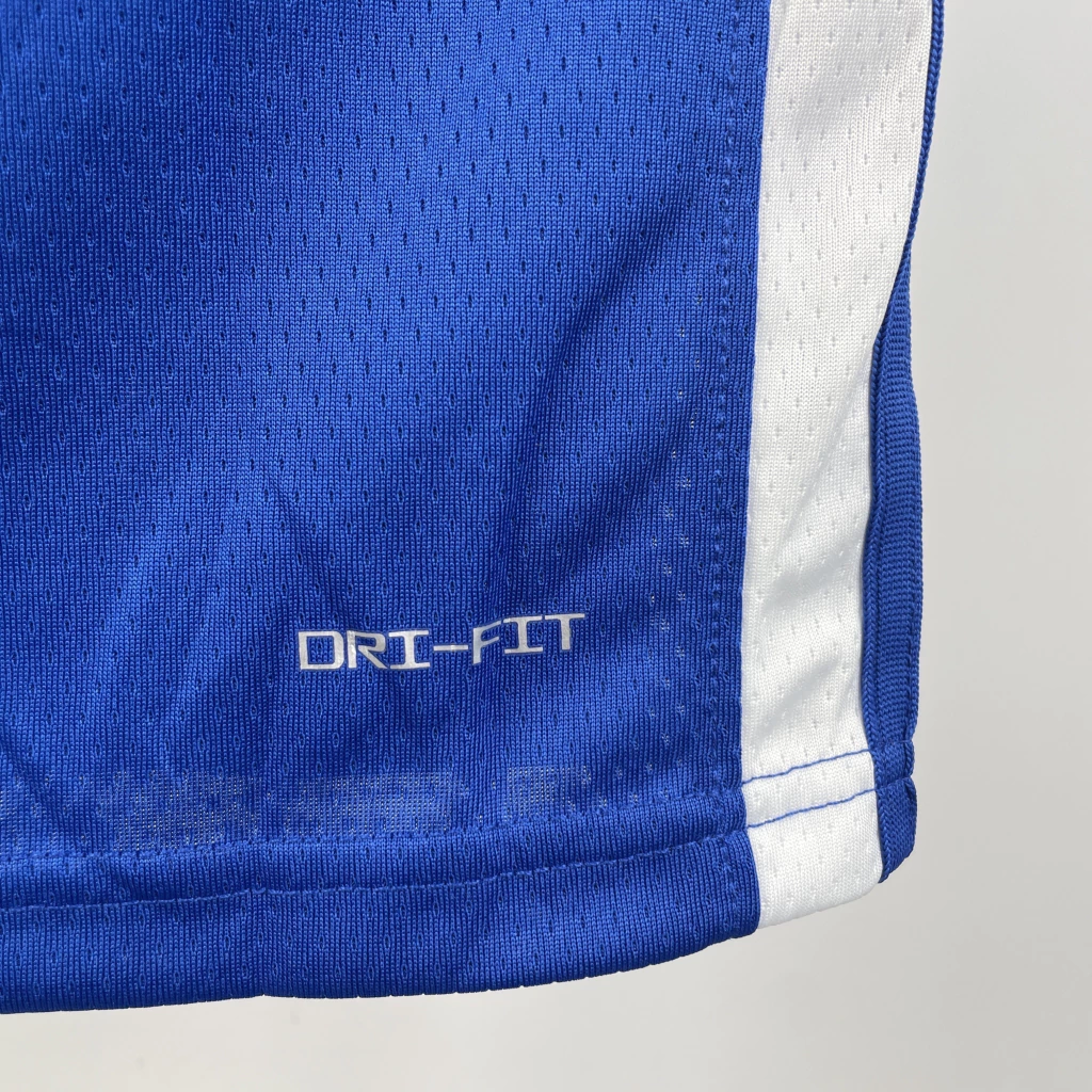 O símbolo da NBA é feito em silk, um pouco diferente do tipo utilizado nos demais detalhes da camisa;