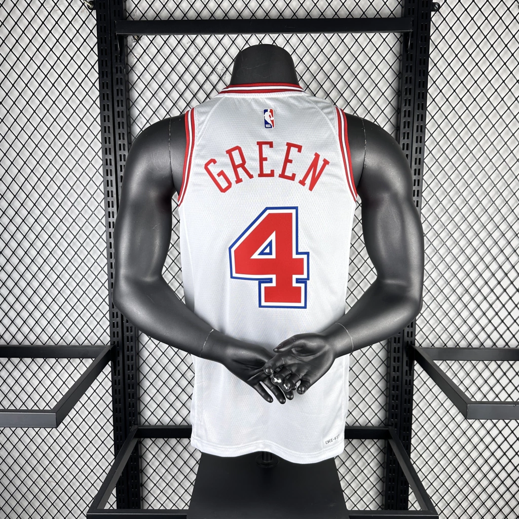 O símbolo da NBA é feito em silk, um pouco diferente do tipo utilizado nos demais detalhes da camisa;