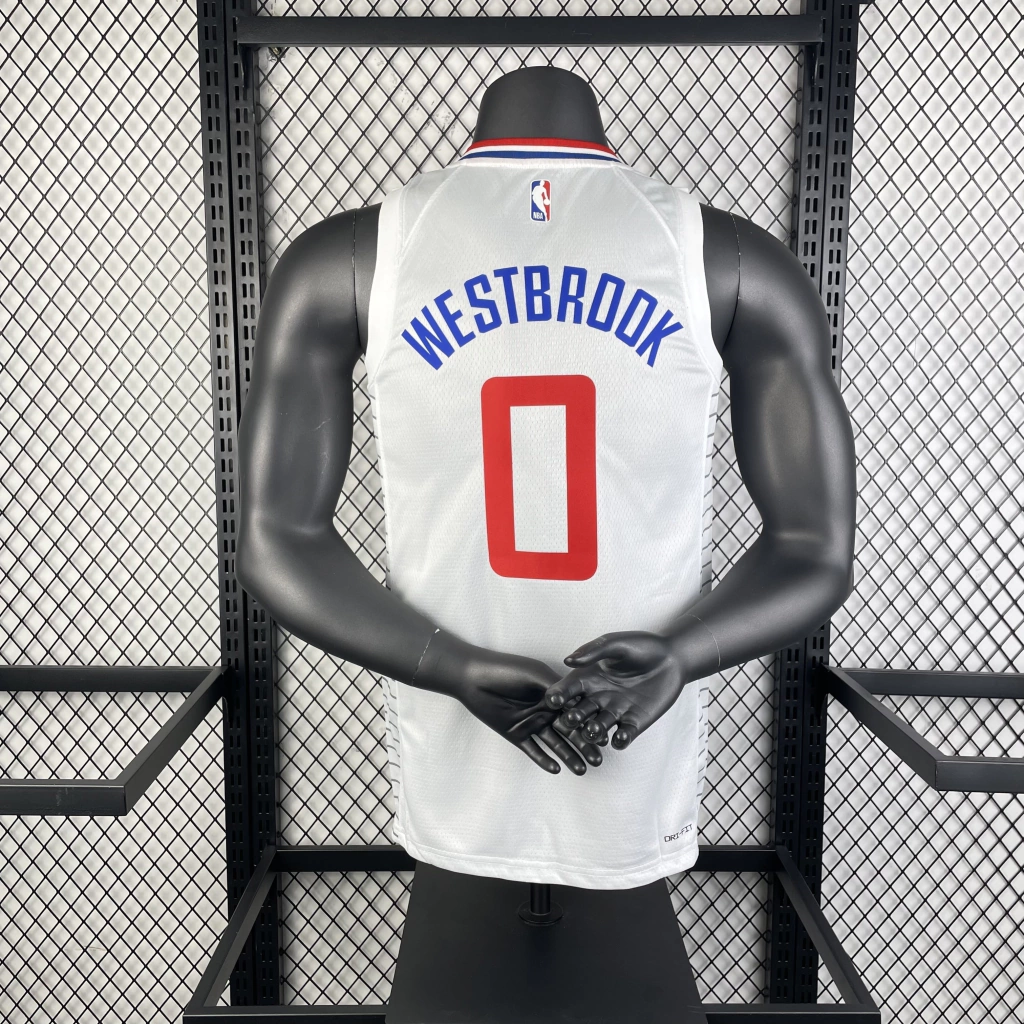 O símbolo da NBA é feito em silk, um pouco diferente do tipo utilizado nos demais detalhes da camisa;