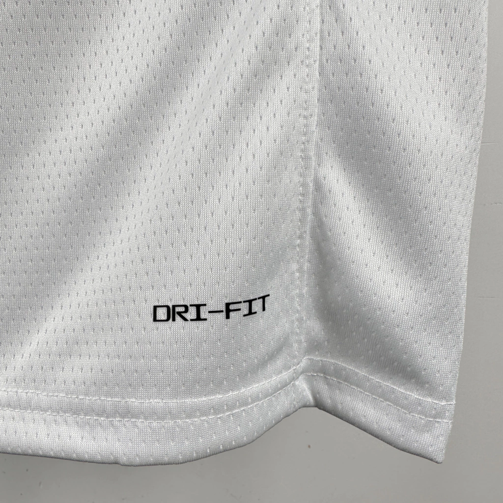 O símbolo da NBA é feito em silk, um pouco diferente do tipo utilizado nos demais detalhes da camisa;