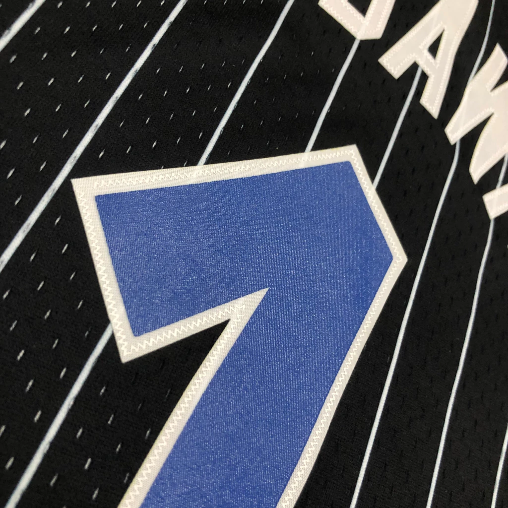 O símbolo da NBA é feito em silk, um pouco diferente do tipo utilizado nos demais detalhes da camisa;