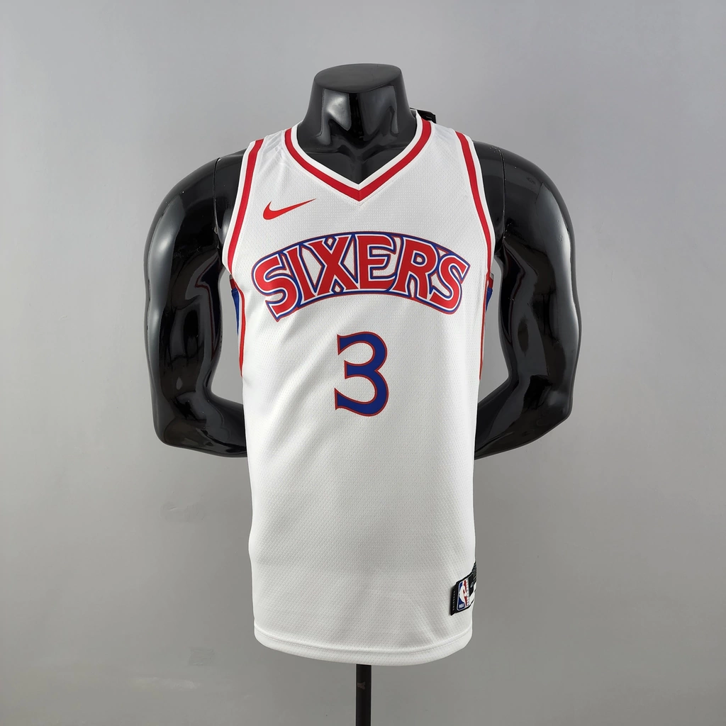 O símbolo da NBA é feito em silk, um pouco diferente do tipo utilizado nos demais detalhes da camisa;