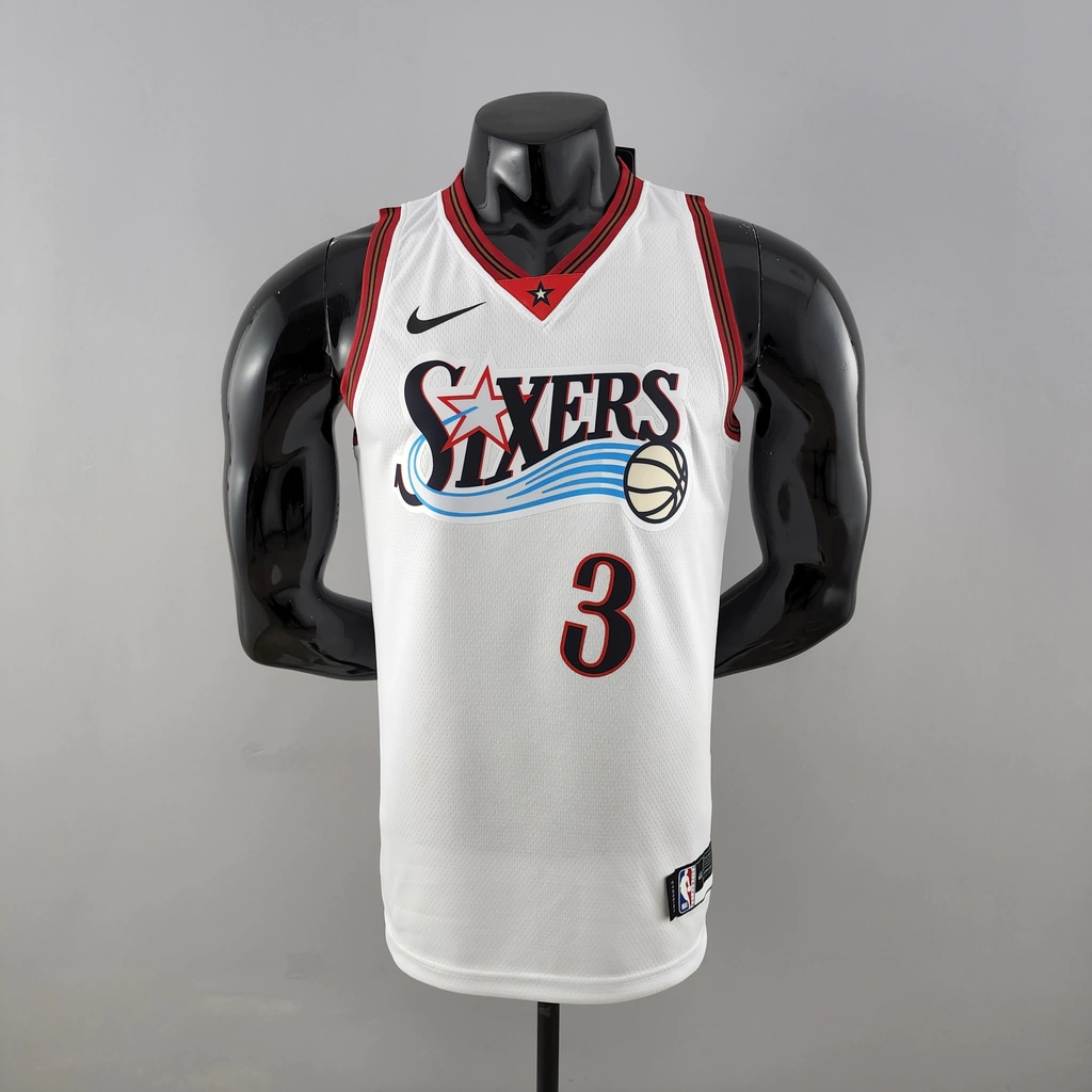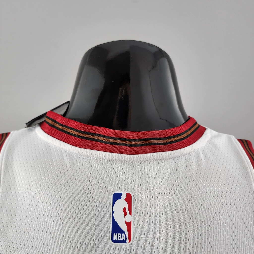 O símbolo da NBA é feito em silk, um pouco diferente do tipo utilizado nos demais detalhes da camisa;