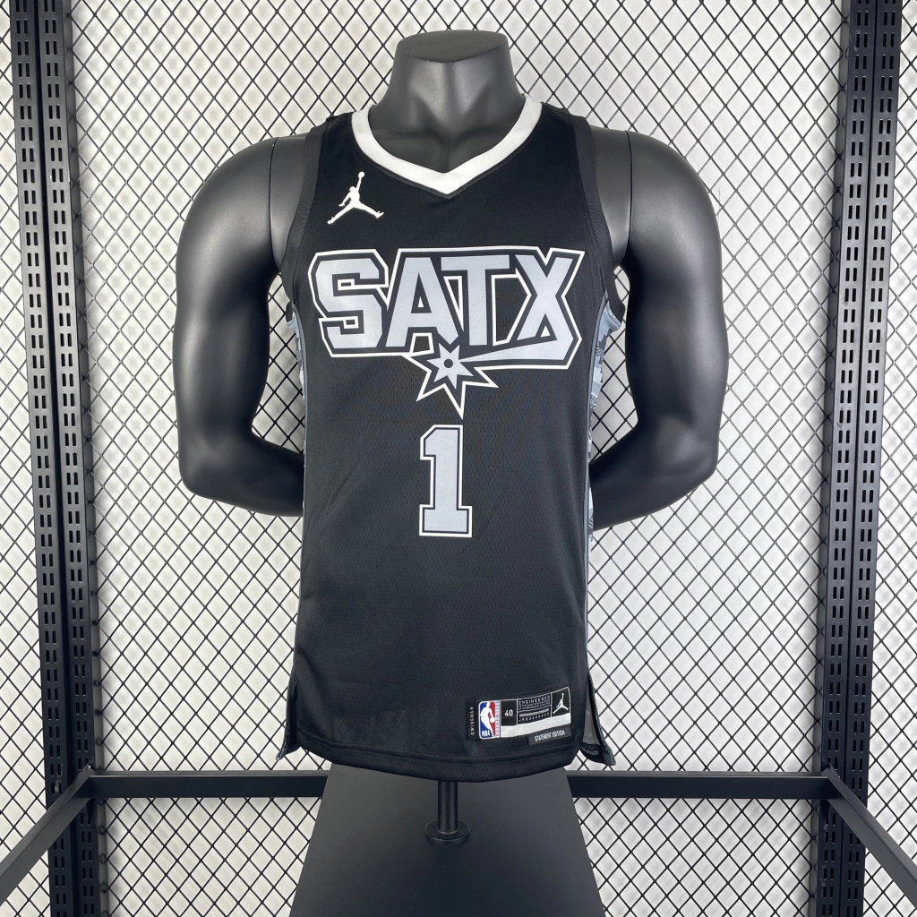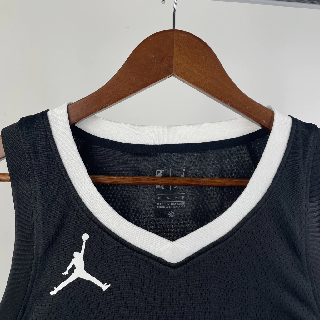 O símbolo da NBA é feito em silk, um pouco diferente do tipo utilizado nos demais detalhes da camisa;